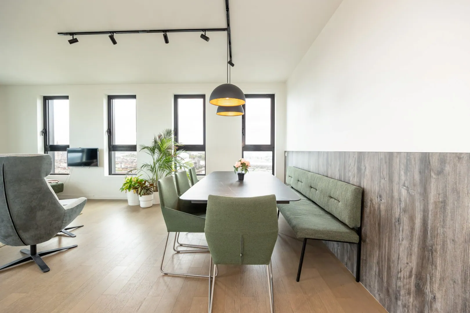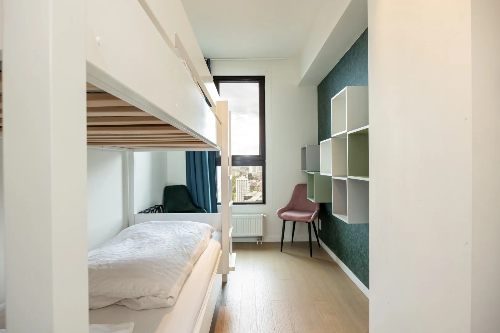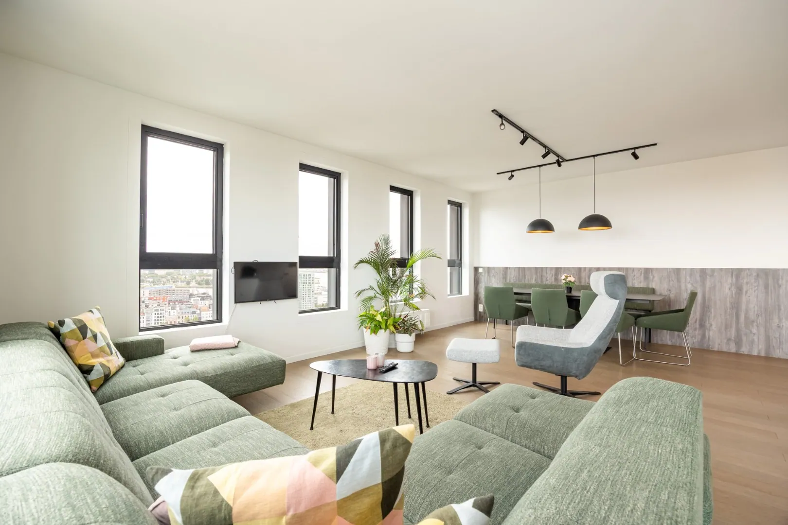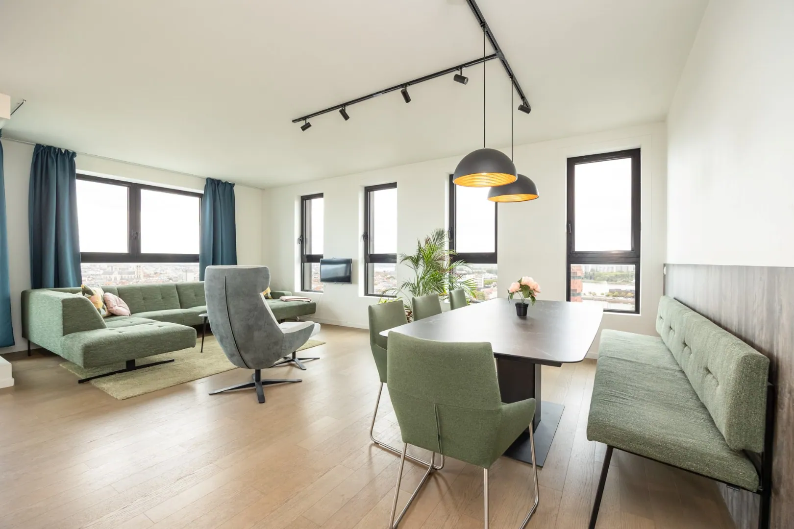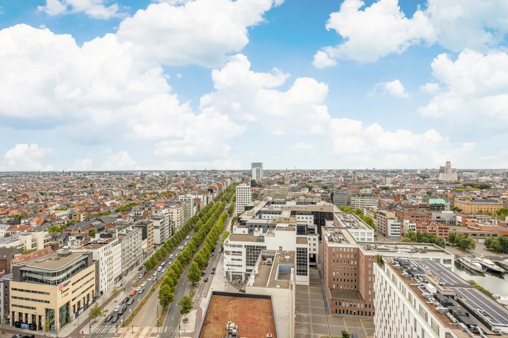 Stijlvol appartement met twee slaapkamers en inpandig terras met magnifiek uitzicht over de binnenstad in de iconische 'London Tower' op 't Eilandje!
