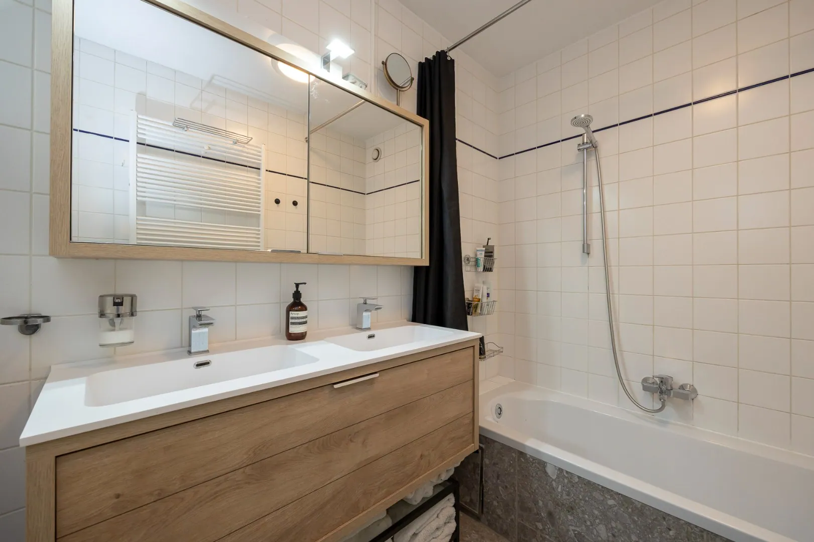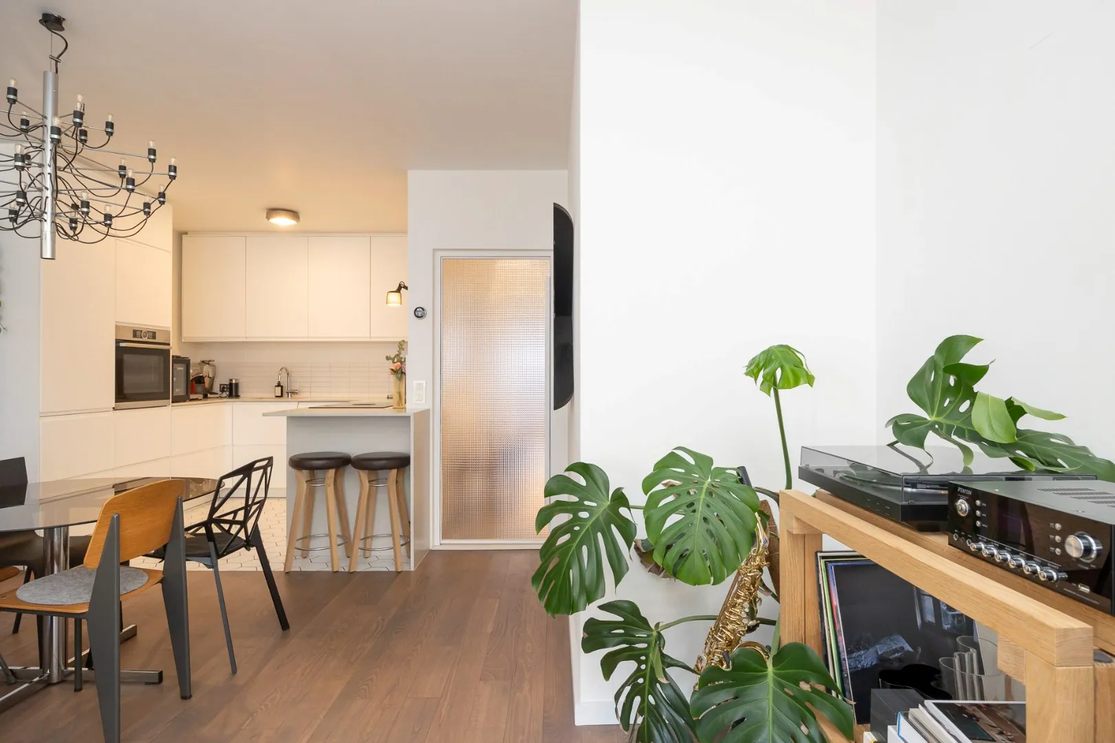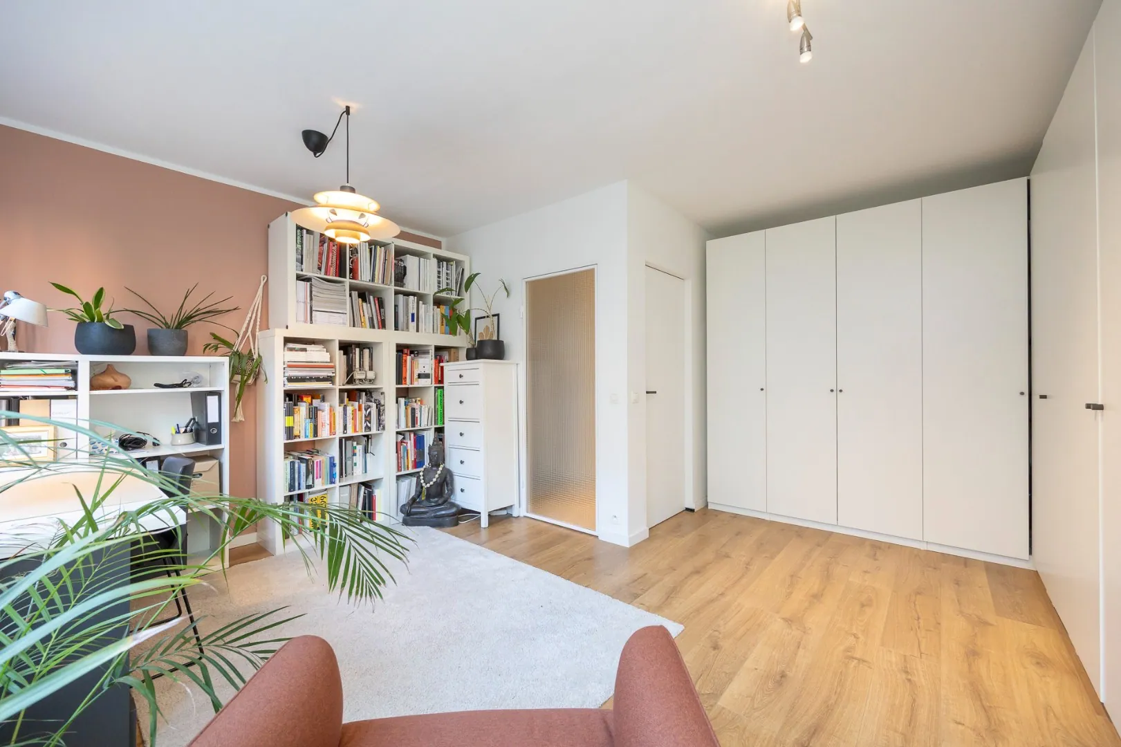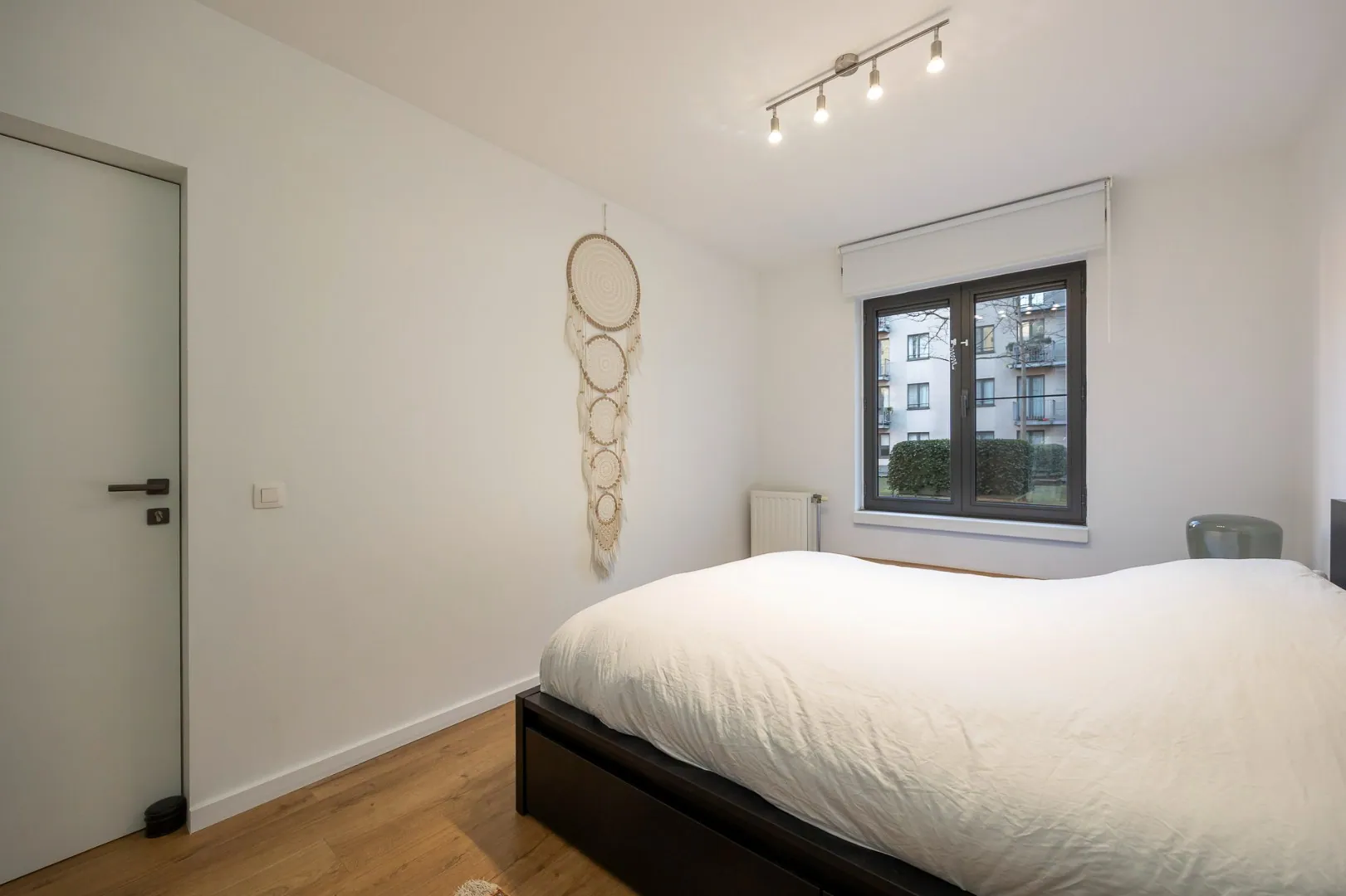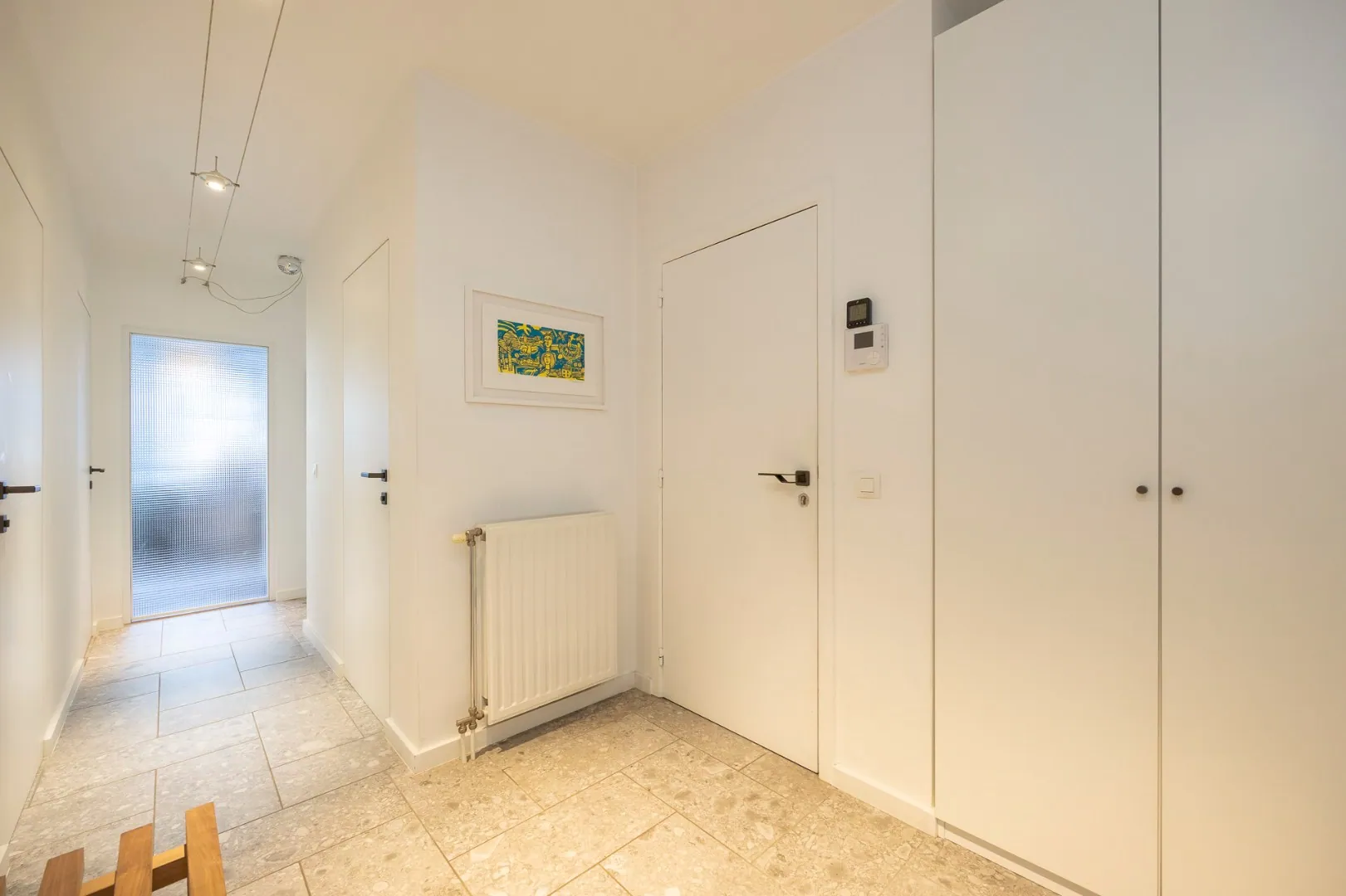 Het appartement werd in 2022 gerenoveerd met hoogwaardige materialen (Xinnix deuren, Quincalux deurgrepen, NEST smart thermostaat), is gelegen op de eerste verdieping, bereikbaar met de lift en heeft de volgende indeling.