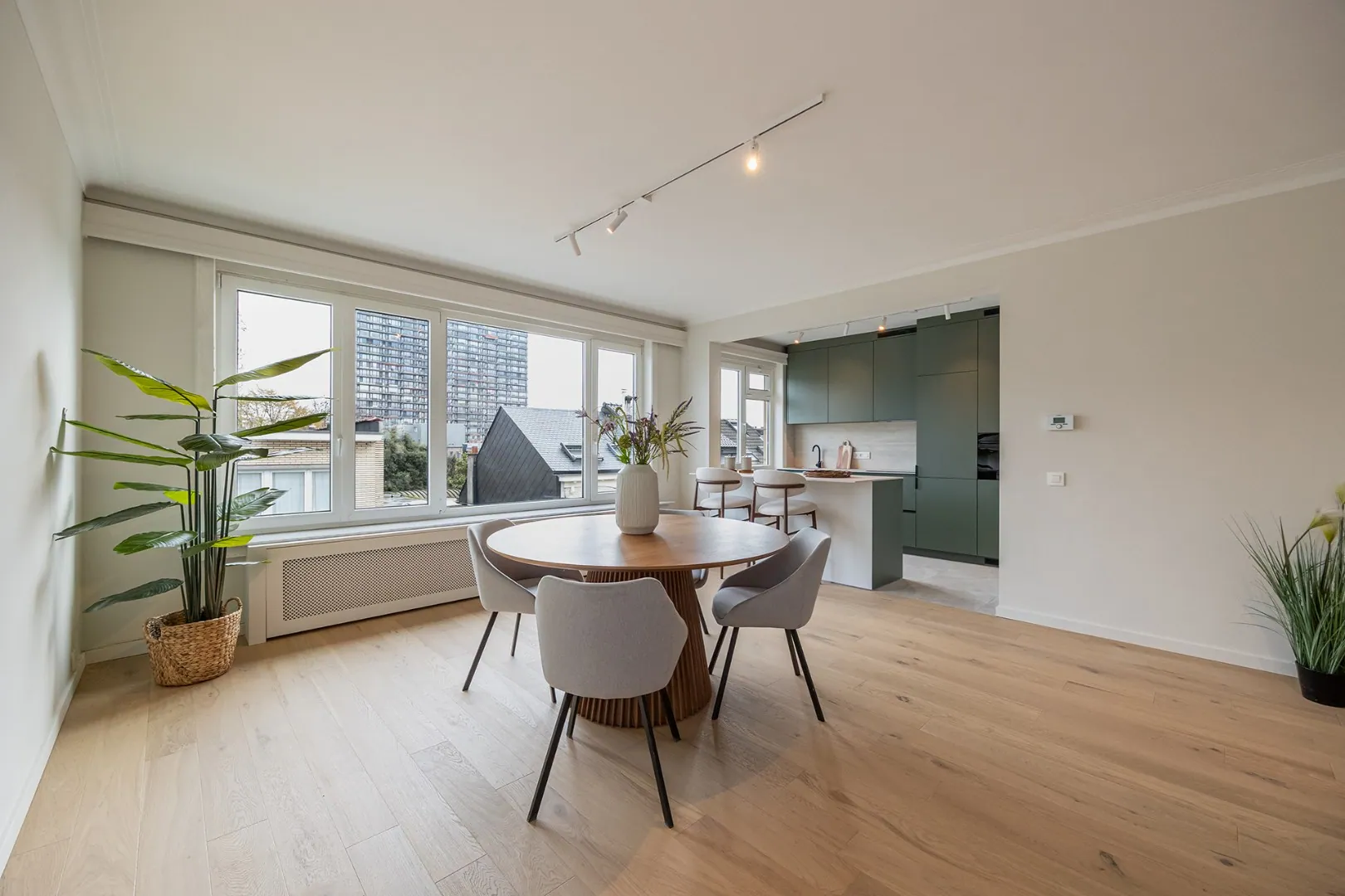 Het appartement werd in 2026 van A tot Z gerenoveerd met hoogwaardige materialen, is gelegen op de derde verdieping, bereikbaar met de lift en heeft de volgende indeling: via de inkomhal voorzien van een vestiaire en een apart toilet betreedt men het appartement, deze geeft toegang tot de lichtrijke leefruimte op vernieuwde parketvloer en een vernieuwde open keuken voorzien van alle toestellen.