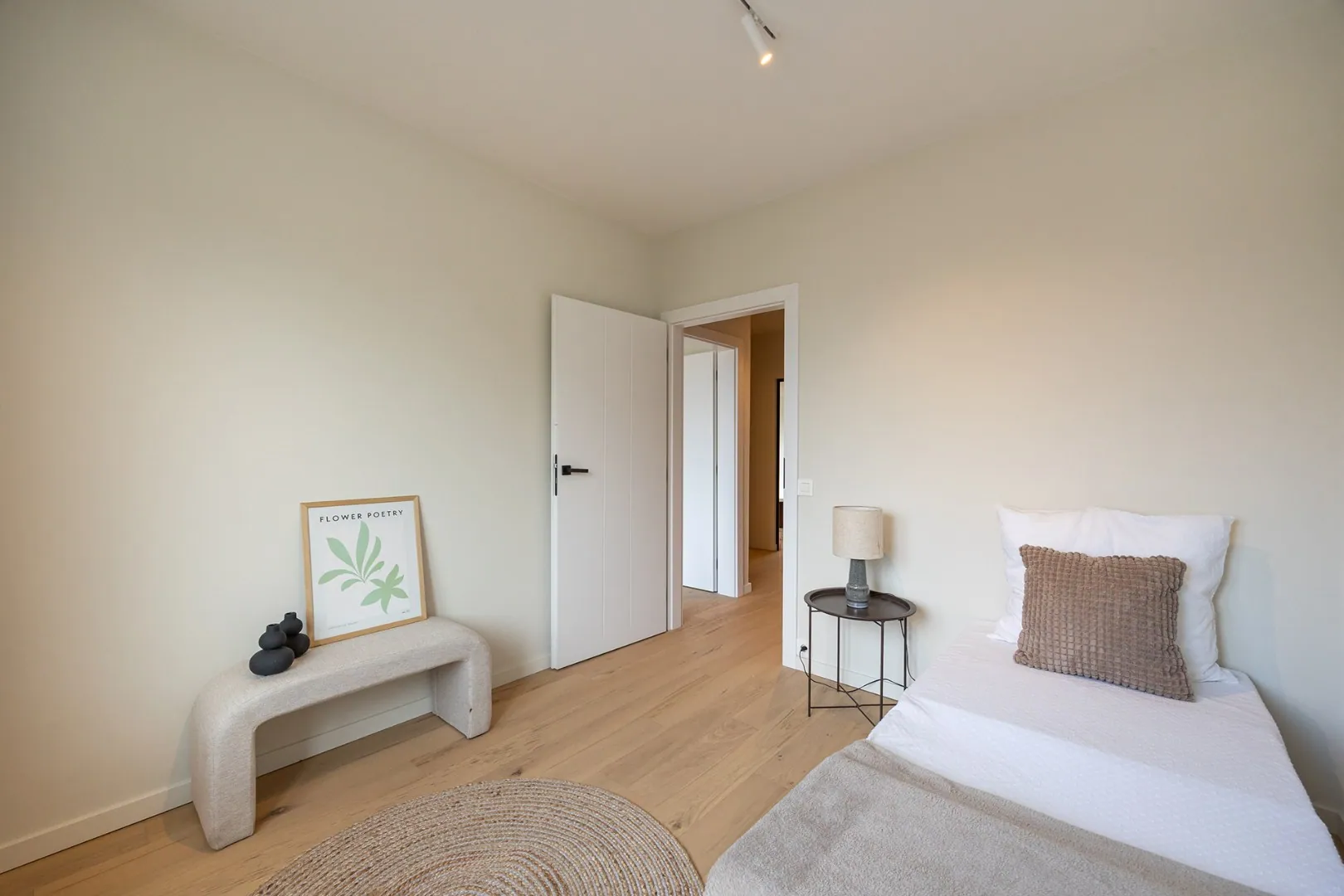 Via de nachthal bereikt men de twee ruime slaapkamers (15m2 - 10m2) waarvan de grootste slaapkamer toegang heeft tot het zuidwest-gerichte terras (6m2) aan de achterzijde.