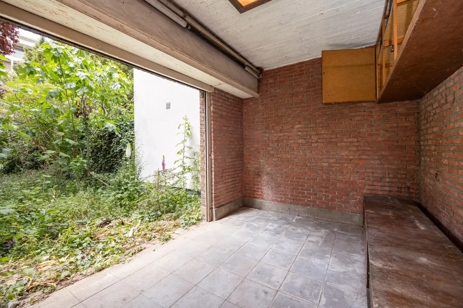 De woning is momenteel ingedeeld in een garage en een berging voorzien van aansluitingen voor wasmachine en droogkast. Via de garage heeft men toegang tot de zonnige zuidwest-gerichte tuin (ca.110m2).
