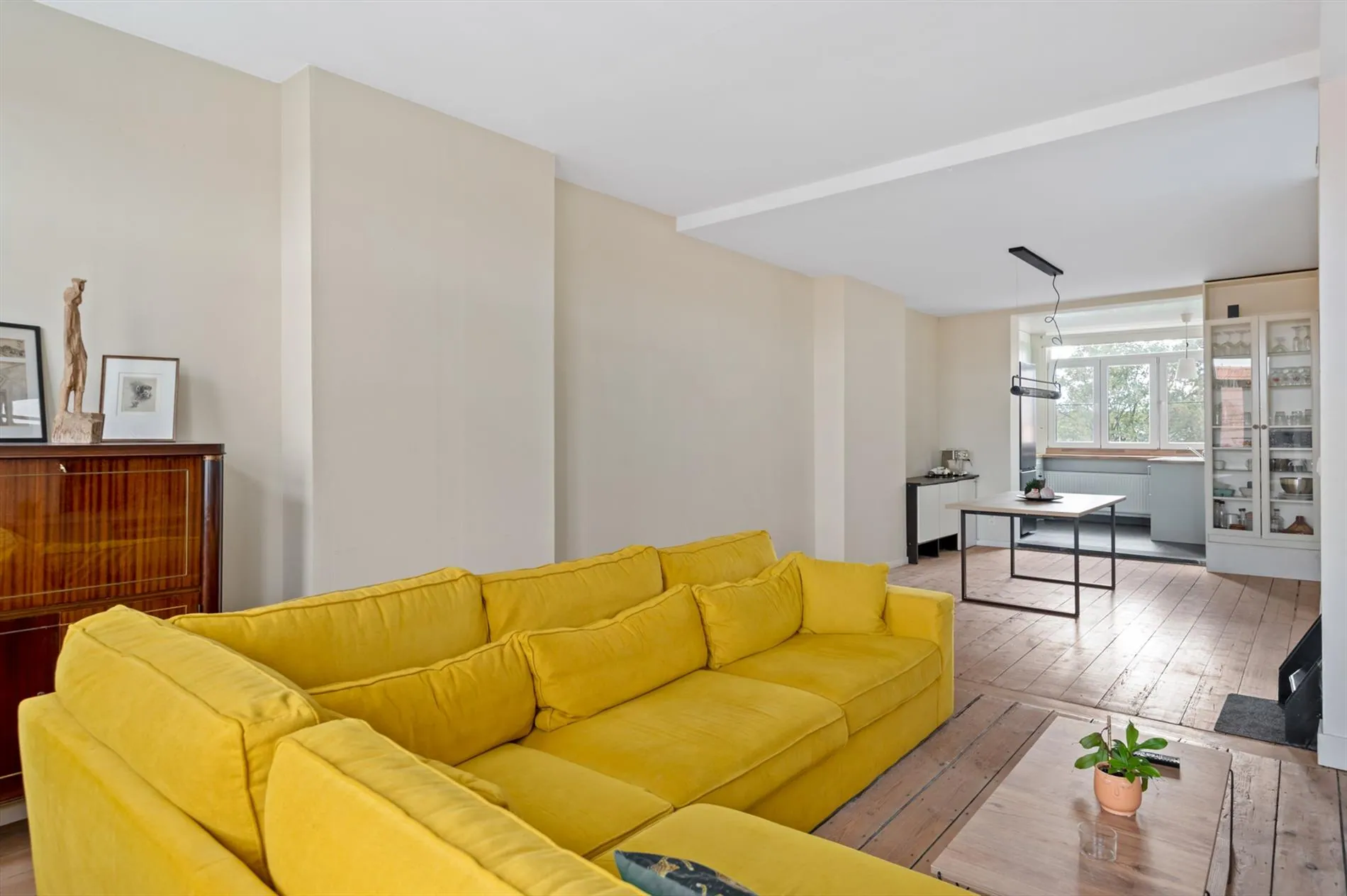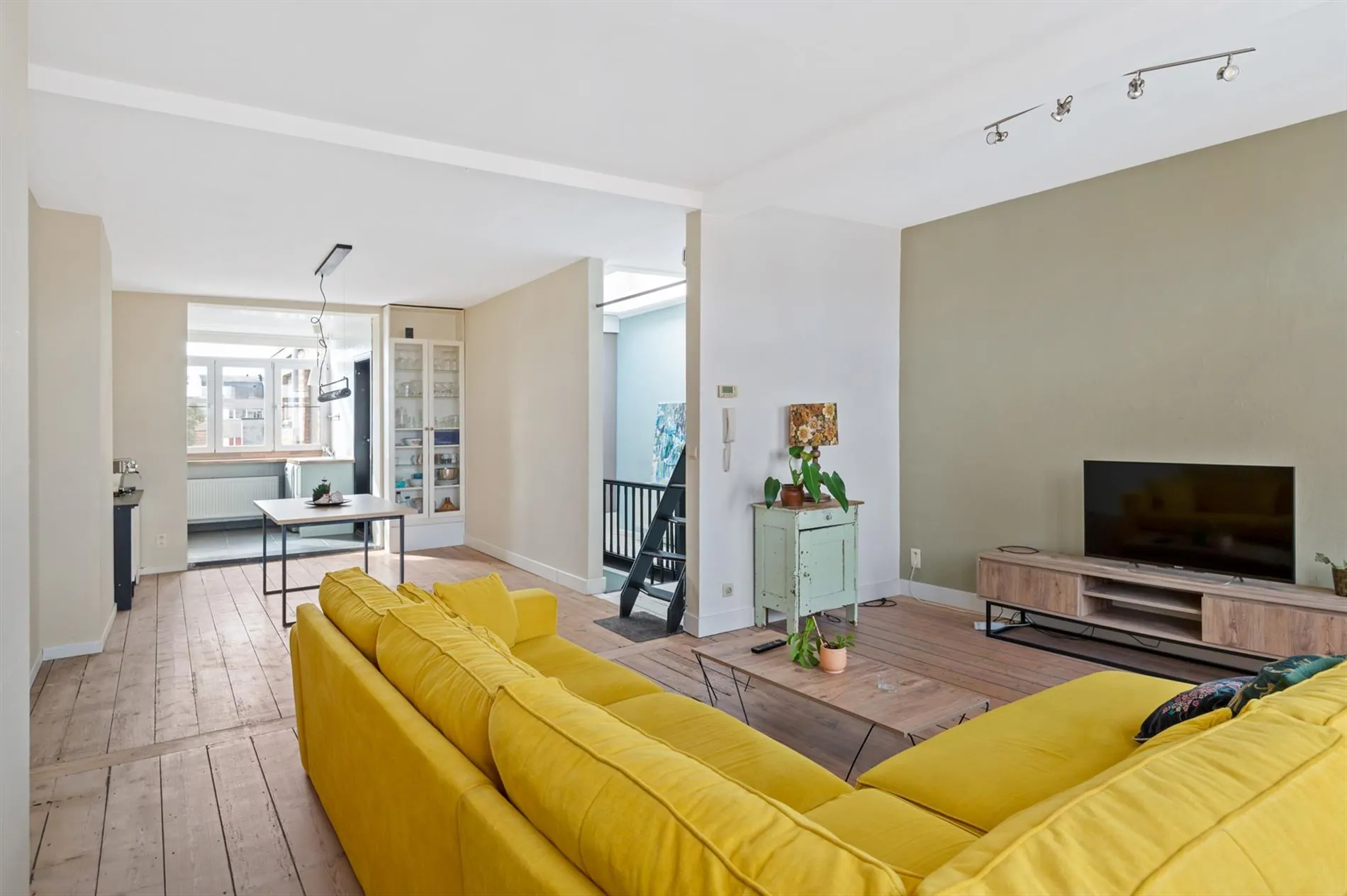 Het appartement gelegen op de derde verdieping is als volgt ingedeeld: via de inkomhal betreedt men het appartement, deze geeft toegang tot de lichtrijke leefruimte op originele houten vloeren en een open keuken voorzien van toestellen.