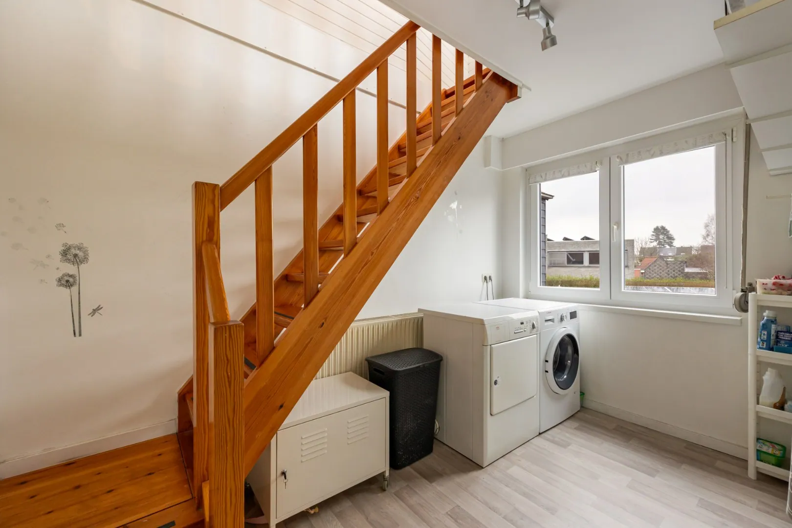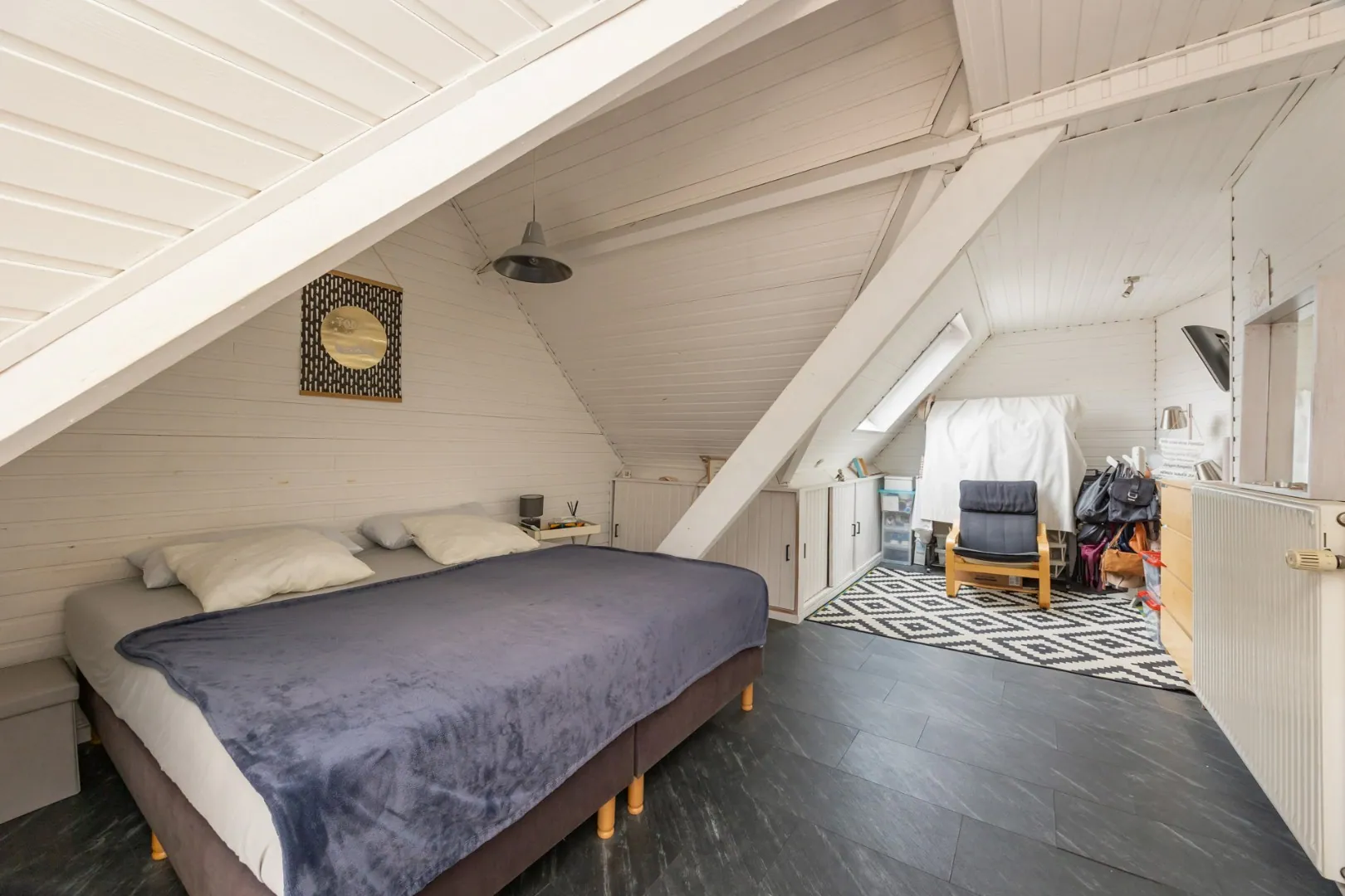 Via de wasplaats bereikt men met een vaste trap de zolderverdieping ingericht als tweede ruime slaapkamer (24m2) en voorzien van veluxramen.